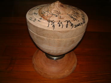 總統陀螺相同尺寸只有兩個,目前一個在總統府內,另一個在達文西瓜藝文館內,以上是總統陳水扁在總統府內簽名.