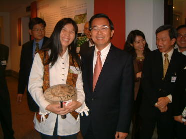 總統陀螺上有陳水扁. 呂秀蓮. 金美齡. 陳郁秀. 吳密察. 朱立倫. 謝小蘊. 賴傳鑑. 等不分黨派政治與文化人士簽名