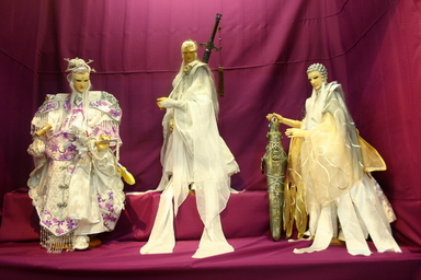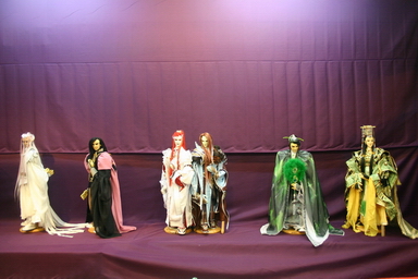 因為今年達文西瓜剛買一尊 [疏樓龍宿] , 所以佈置展場就很歪心的以華麗高貴的紫色為主, 都是布做的很貴啊~$_$~.....今年戲偶並不算多, 少校注重戲偶靜態展示動作, 太多偶排排站並非好事, 戲偶的主人少校用了一天擺好的戲偶超級用心, 所以拍照一定會美美的, 而且我們保持往年的展出高度就是要讓大家很舒服.很近的看偶, 聽說之前大家去看大活動的偶是禁止拍照的, 想出一口氣的人趕快來拍照吧!!