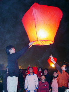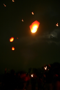 3.天燈接龍:民眾於河濱公園河堤以接龍方式施放天燈。 |