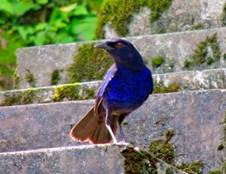 5.紫嘯鶇:在黎明或黃昏時常會發出像人類口哨的巨大叫聲,牠們經常沿著小溪流或在濕地中尋覓小蛇、螃蟹、水果和昆蟲做為食物, 月眉上石屯地區常見。