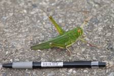 19.台灣大蝗:俗稱蚱蜢或草螟仔,是台灣所有蝗蟲中體型最大的一種,各腳脛節紅色,