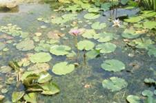 26.睡蓮:多年生水生草本,外型與荷花相似,而睡蓮的葉子和花浮在水面上,睡蓮秋季開白色花,午後開放,晚間閉合,可以連續開閉三四日。