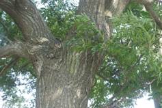 40.苦楝樹:落葉喬木,苦楝的樹皮呈暗褐色,有淺縱裂紋;春夏之交開淡紫色花,圓錐狀聚傘花序,花絲合成細管,花芳香;10月果熟,核果球形、熟時橙黃色,經冬不落。