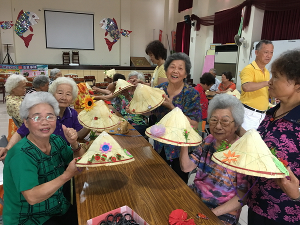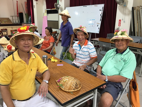 每一年社區的老人家都會自己美化、彩繪、裝飾自己的表演行頭道具,今年要準備的是斗笠,社區故意準備小孩子戴的尺寸提供給老人家,戴起來反而更可愛了! |