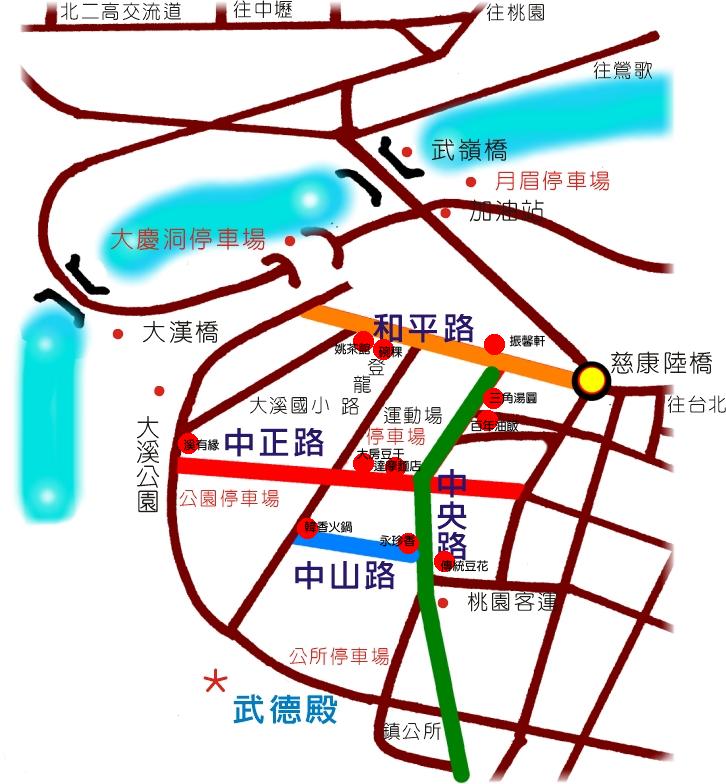 | 溪有緣風味餐廳 | 姚茶館風味餐館 | 水源地活魚餐廳 | 真正的大溪豆干:大房豆干 | ||