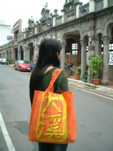 [阿淑姊], 阿淑姊為人平時及公好義,凡是社區活動都是率先投入,為社區街坊之間增加極大推展動力,阿淑姊是為不折不扣的環保媽媽,凡是可回收利用的資源到了阿淑姊手上必能化腐朽為神奇,當我們漫步在中山老街上,除了欣賞中山老街優雅的街坊牌樓外,常可看到阿淑姊坐在亭仔角下一針一線的縫製[環保購物袋],這是阿淑姐的絕活之一,她常常收集地方上的文化活動或是選舉旗幟廢棄的布旗,收回家洗乾淨之後按照旗幟的圖案與特色來縫製[環保購物袋],因為創意極佳加上手工精巧,已有人遠從中部慕名而來定製收購;