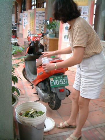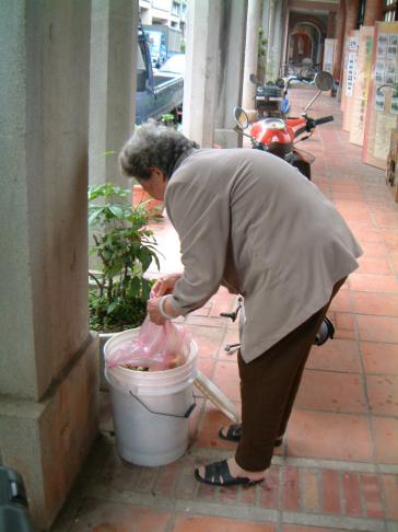 阿淑姊另一樣特色是[環保廚餘桶]的推廣,在中山老街的騎樓下常常會出現一種白色的圓桶子,底下有一個小水龍頭,中山老街居民幾乎家家戶戶都有一桶,這就是阿淑姊在中山老街全力推行的[環保廚餘桶],推行幾年以來已經成為中山老街的特色之一,連大溪的觀光導遊來到中山老街都必須介紹中山老街的[環保廚餘桶]之後才算是完整的介紹,阿淑姊對環境保護的精神與堅持佳惠了街坊鄰居,更為地方社區教育做了最佳成功示範.