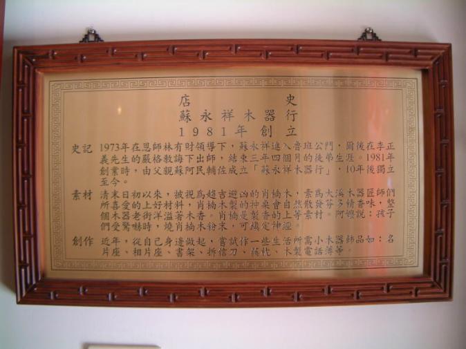1981年創業時,由父親蘇阿民輔佐成立[蘇永祥木器行],10年後獨立至今.