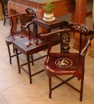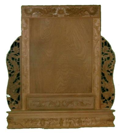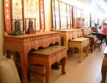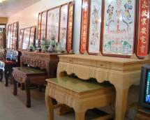 素材: 清末日出以來,被視為趨吉避凶的肖楠木,速為大溪木器匠師們所喜愛的上好材料,肖楠木製的神桌會自然散發分多精香味,整個木器老街洋溢著木香;肖楠是製香的上等素材;阿禡說:孩子們受驚嚇時,燒肖楠木粉末,可鎮定神經.