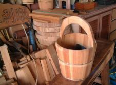 本店經營木桶製造已將近有八十年,是自前大溪鎮上專門手工製造浴桶的老字號,由休榮隆先生之祖父親自傳授技藝予他,這四十多年以來仍不改對製造木桶之熱衷。三代傳承迄今,由第二代林榮隆先生掌理,他表示當初在國小畢業後,未進入初中,其祖父為使他獲得一技之長,故親自傳授一身製作木桶的好功夫給長孫林老板"他闡述說,手工木桶之特色在於使用好的檜木及竹釘。 |