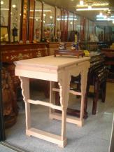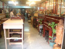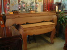 開業至今近六十年的信發木器行,第二代傳人陳正春之妻朱月裡表示,丈夫是家中老大,另創名號為[信發],是由於標榜的是「講信用」的店,其公公小時候便學習木器製造的技術,學成後則先到台北就業,後來才回到大溪創業。陳老板強調,本店無進口、完全自擁工廠自製自銷,其在材料退擇方面,傢俱多使用品質好的黑檀、紫檀及花梨木、台灣梢楠木。從挑選原木、裁木、備料、打圖、做成模型、雕刻、組合、上漆,一貫流程,皆按照程序來,輕忽不得;加工部份則交山具有經驗的老師傅處理,對於製作過程相常注重。目前在52號另有一家信發木器行,專門在販售椅子、床、衣櫃等生活傢俱,有別於60號本店販賣佛桌。此店經營特色是可依客戶喜好,改變其設計之規格及樣式,無論大小尺寸皆可隨客戶要求製作、設計,以滿足消受者之要求。在售後服務上,免貸的維修是給予客戶的最佳保證。 |