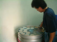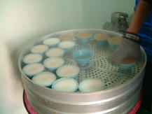 在和平老街草店尾區有一家名為『金源』的歷史街坊牌樓就是『里長嬤碗稞』的店,里長嬤做碗稞六十多年了,里長嬤是前福仁里里長的夫人,做碗稞的手藝是婆婆教的,完全按照古法料理,里長嬤採用顆粒圓滾飽滿的『載來米』研磨成米漿後盛在碗裡放在蒸籠蒸熟,以經驗控制火候與時間,出籠之後在碗稞上面『散」上佐料即可食用;說起來碗稞很多人都會做,偏偏里長嬤做的碗稞就是特別好吃!