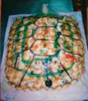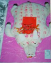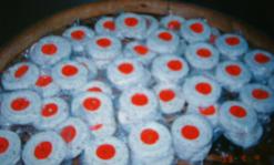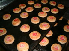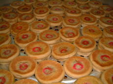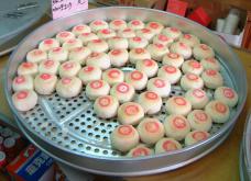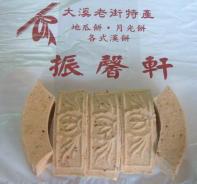 紅印,如同看月亮一般,有層次感,故又名「月光餅」,製作特色在於以糯米粉做為製地瓜餅的主原料,「小而厚的外型才能烘培出香、Q的地瓜餅,。