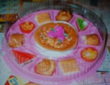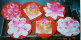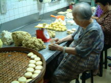 本店以做漢餅為主,種類有幾百種,以訂單式方式生產,不論型式方或田,重量輕或重,有能力完成的,便會接下訂單,婚喪喜慶各有特定的糕餅。現在因為和平老街正在發展,所以積極研發古早味的「水晶芋」,來配合現代人的口味,請大家耐心等候品嚐佳品。