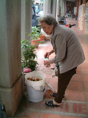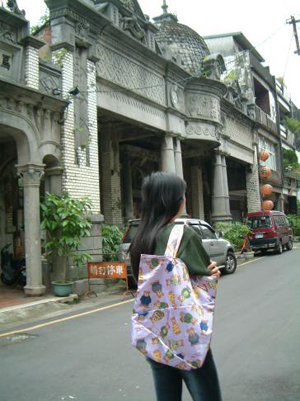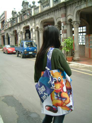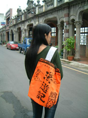 [阿淑姊], 阿淑姊為人平時及公好義,凡是社區活動都是率先投入,為社區街坊之間增加極大推展動力,阿淑姊是為不折不扣的環保媽媽,凡是可回收利用的資源到了阿淑姊手上必能化腐朽為神奇,當我們漫步在中山老街上,除了欣賞中山老街優雅的街坊牌樓外,常可看到阿淑姊坐在亭仔角下一針一線的縫製[環保購物袋],這是阿淑姐的絕活之一,她常常收集地方上的文化活動或是選舉旗幟廢棄的布旗,收回家洗乾淨之後按照旗幟的圖案與特色來縫製[環保購物袋],因為創意極佳加上手工精巧,已有人遠從中部慕名而來定製收購;