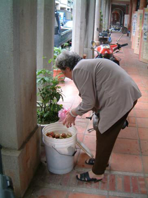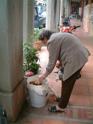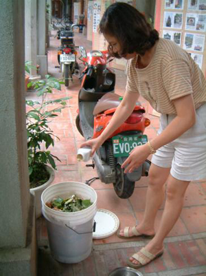 阿淑姊另一樣特色是[環保廚餘桶]的推廣,在中山老街的騎樓下常常會出現一種白色的圓桶子,底下有一個小水龍頭,中山老街居民幾乎家家戶戶都有一桶,這就是阿淑姊在中山老街全力推行的[環保廚餘桶],推行幾年以來已經成為中山老街的特色之一,連大溪的觀光導遊來到中山老街都必須介紹中山老街的[環保廚餘桶]之後才算是完整的介紹,阿淑姊對環境保護的精神與堅持佳惠了街坊鄰居,更為地方社區教育做了最佳成功示範.