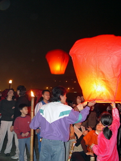 3.天燈接龍:民眾於河濱公園河堤以接龍方式施放天燈。 |