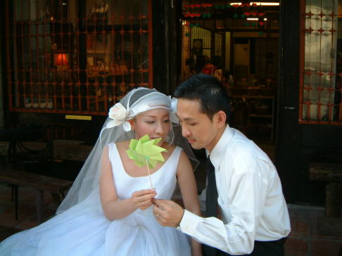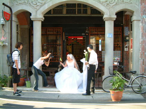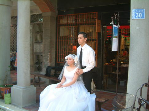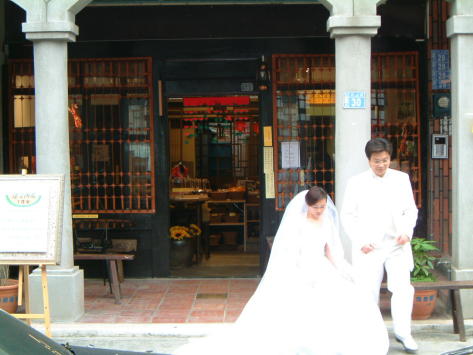 通常在非假日時間,太陽光不大的時候,寧靜的中山老街上就會出現穿著美麗潔白禮服的新娘子和彬彬有禮的新郎倌,在專業攝影師的引導下拍著婚紗照,總是給寧靜高雅的中山老街帶來及其溫馨的氣氛.