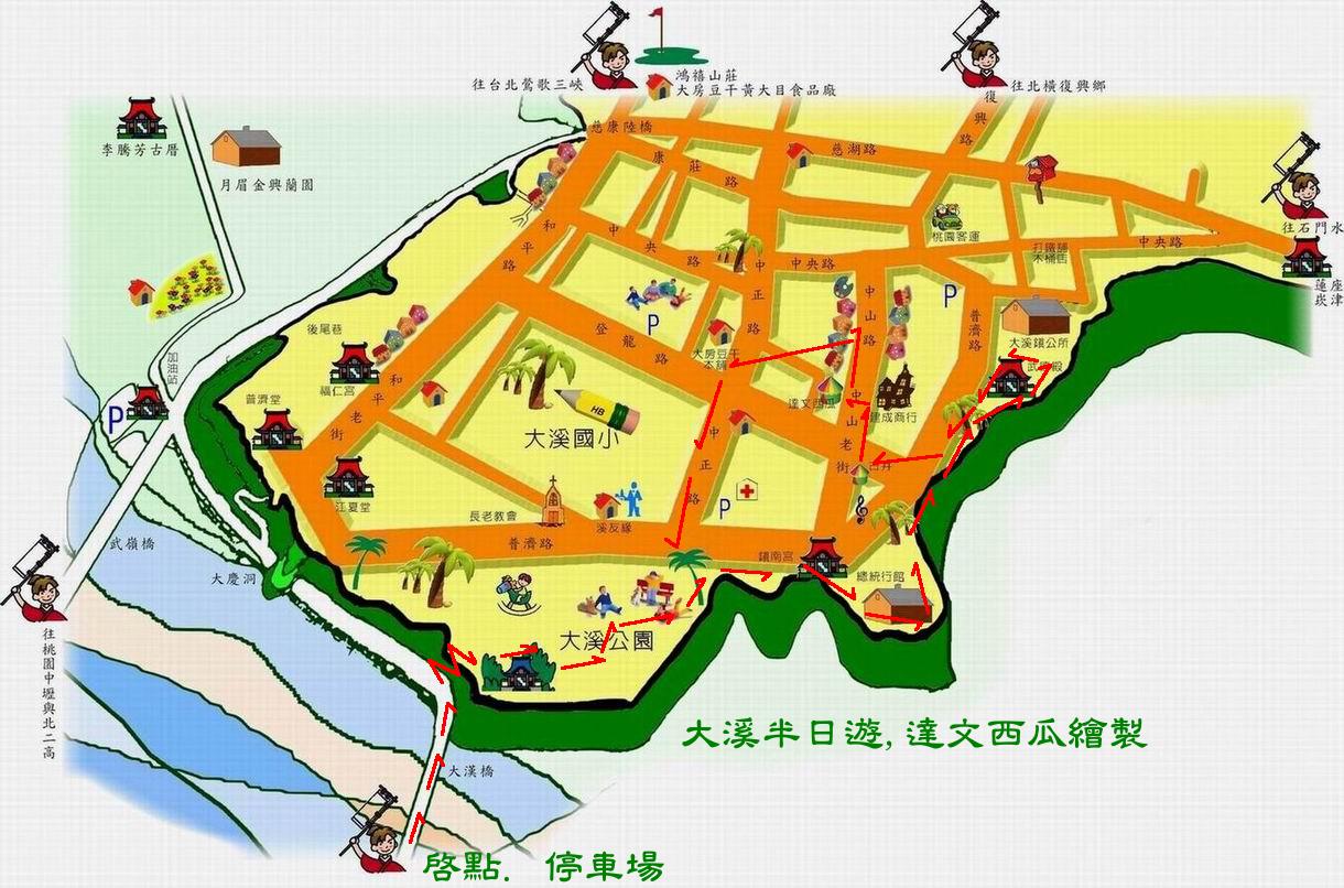 以上就是大溪半日遊的路線說明,你看,是不是停車方便、廁所方便、風景絕佳、路線涼快、歷史古蹟多、沒有車輛、行走安全呢?人說大溪旅遊有三樣不要錢,就是:[