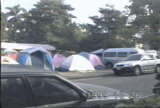 說起在車上睡我算是很舒服的,在我車旁大大小小的帳蓬災民真是夠苦的,晚 |