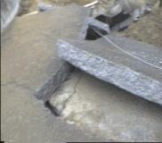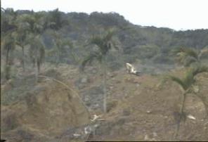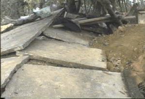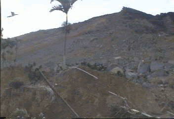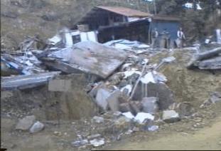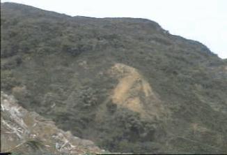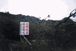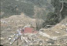 這裡是爆發點的側面,山上垮下來的土方不但填滿山谷還造成陡峭的山坡,大 我們遠看對面小山上有一塊兩三公尺寬的岩石,據居民說那塊岩石在地震前 |