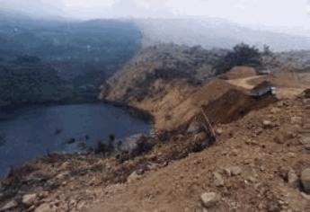 左手邊是被整座山填`平的山谷,下面就是堰塞湖: |