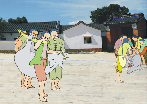 圖案內容說明: 12殺豬公 大溪殺豬公風氣鼎盛,地方殺豬公慶典由各方廟宇依序辦理,時間長達半年之久,跟隨時代改變、民俗簡化,預期殺豬公祭典將逐漸式微,而殺豬公過程也也逐漸為時代觀念非議,但是傳統文化演進過程畢竟是歷史的一部份,而且整體祭祀儀式中,殺豬公僅為其中部分而已,再說如今豬公已有各式素食祭品取代,榮有學習與紀念的需要。 大溪地區各廟宇殺豬公緣起目的不同,例如大溪老街福仁宮每年農曆2月11日開漳聖王陳元光將軍壽辰慶典為例,農曆2月11日當天早上10點有拜拜,舉行「三獻禮」,「三獻禮」是屬儒教系統,大概要花一個多小時來辦理,「三獻禮」完畢後,就各自將豬公取回。 祭典的活動由下年度輪值的姓氏辦(發落),錢由本年度的姓氏出。 二月十一日的晚上,由輪姓的人,要出錢請各姓的頭人吃飯。每姓有三人,由各姓推舉,不過也有輪值的姓氏以壽桃代禮,取代辦桌請客。 大溪地區各方廟宇每年輪值殺豬公祭典都是以『十大公號』的『一李、二江、三林、四簡、五張廖、六黃、七呂、八王游、九陳、十(什)姓、』等個姓氏作為輪流辦理的順序依據。 |