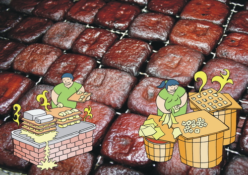 遠近馳名的『大溪豆干』不論是在外觀和口感都與一般豆干不同,例如一般市面上的豆干剖面都有許多孔洞,而大溪烏豆干的剖面卻極少有孔洞,大溪豆干老師傅早就研發出天然技術使豆干好看又好吃了。 |